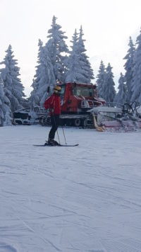 Eenmaal op de piste is het eigenlijk best lekker, maar het is zo jammer dat je de lift weer in moet. Gelukkig hebben ze hier 2 stoeltjesliften met verwarmde zitting, lekkerrrrr….. Ik blijf gewoon een rondje zitten denk ik. Helaas is er ook een lift zonder verwarming en het is nog geen snellift ook. Dat duurt lang en je vriest vast aan het stoeltje. Ondanks alles zetten we flink door, met af en toe even naar binnen om op te warmen, maar om een uur of 16.00 is het toch echt klaar en krijgen de kinderen het niet meer warm, ondanks alle laagjes (ze lijken wel Michelin-mannetjes). Ook het biertje achteraf laten we zitten, het is te koud om buiten te zitten onder aan de piste.